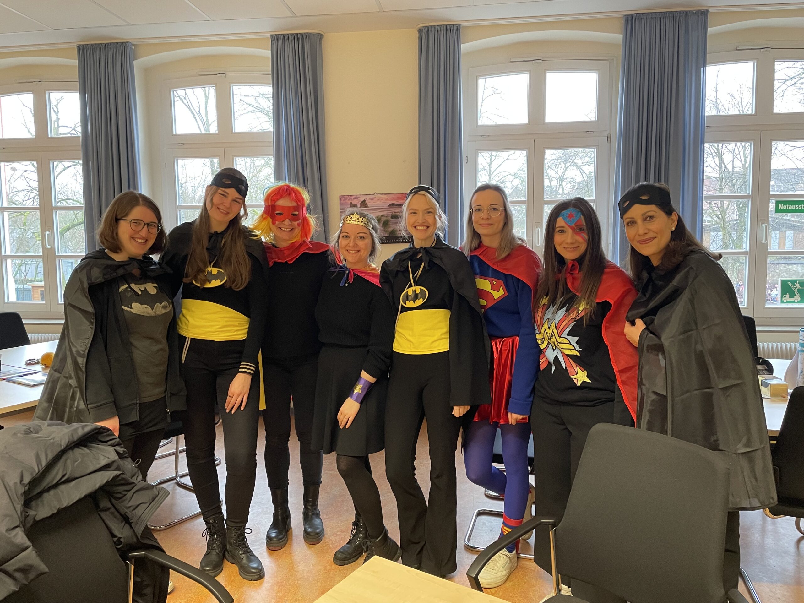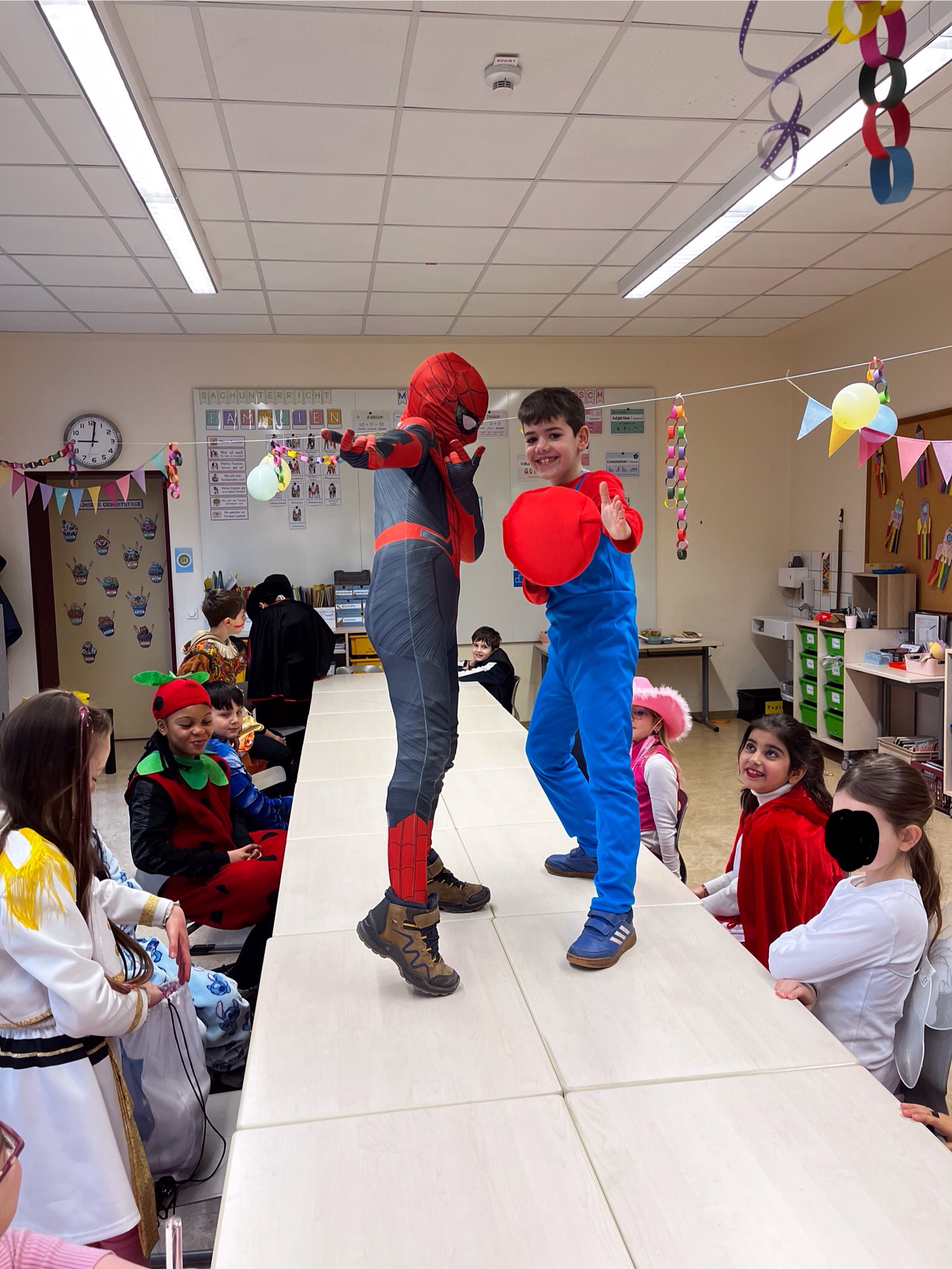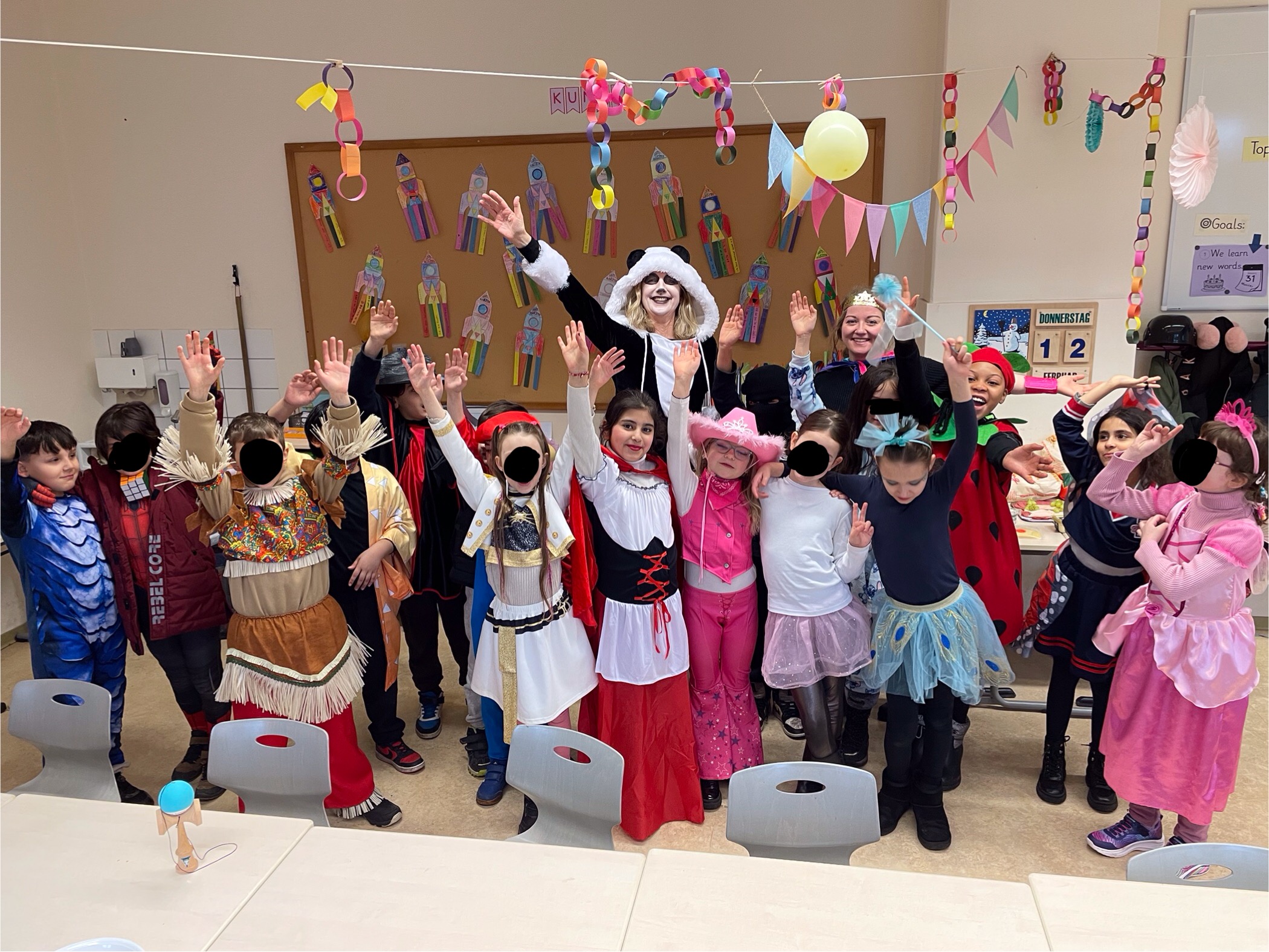 Besonders beliebt bei den Kindern ist jedes Jahr die Modenschau: Die Tische im Klassenraum wurden kurzerhand zum Laufsteg, auf dem Prinzessinnen, Superhelden, Tiere und viele andere kreative Figuren stolz ihre Kostüme präsentierten.